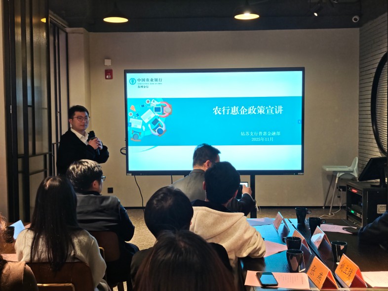 座谈中,中国农业银行姑苏支行普惠金融部袁辉鹏经理作《农行惠企政策分享》专题交流,确实缩短金融服务与企业需求的距离,让便捷化、人性化的金融支持贯穿企业发展全周期;同时以配套服务的延伸,传递国有银行的责任担当,为企业轻装上阵创造良好环境,助力构建更具活力的产业生态,为城市高质量发展筑牢金融支撑。