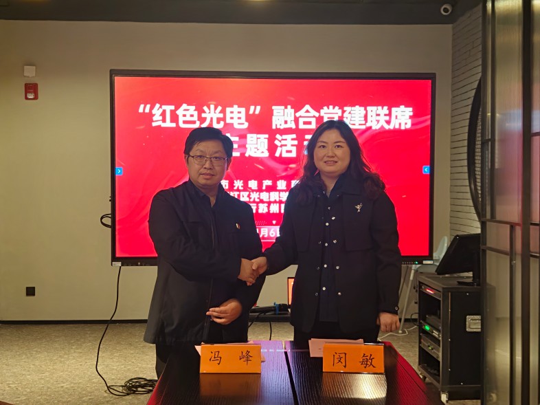在党建引领和“党建+”赋能框架下,参会代表在会上还就各自行业、组织、公司等情况进行介绍和互动交流,一起总结“十四五”、共话“十五五”。 吴江区光电科学技术协会党支部表示,在党的二十届四中全会顶层设计和战略擘画下,十五五期间将深化“链上党建”,让党建赋能新质生产力,让组织振兴激活发展新动能。将产业链党建打造成领航定向、赋能助力、护航发展的“红色引擎”,让“红色光电”力量在产业链上凝聚、优质资源在产业链上整合、创新发展在链上实现。