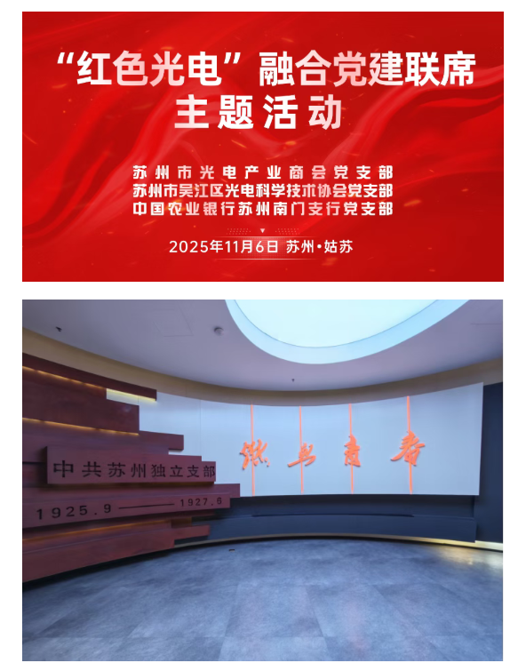 在全国全面学习贯彻党的二十届四中全会精神之际,11月6日下午,“红色光电”融合党建联席主题活动在中共苏州独立支部旧址顺利开展。苏州市吴江区光电科学技术协会党支部、苏州市光电产业商会党支部主办,中国农业银行苏州南门支行党支部协办。