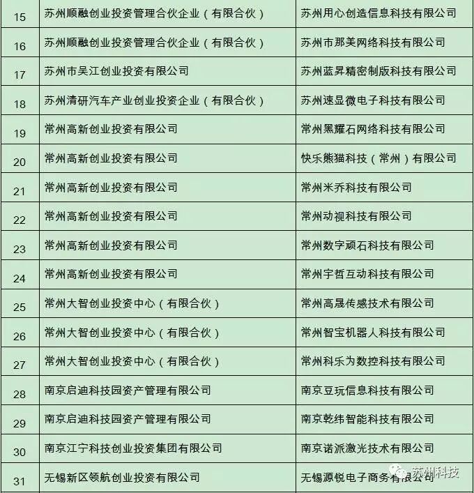 为鼓励引导天使投资支持初创期科技型小微企业创新发展,根据《江苏省天使投资引导资金管理暂行办法》(苏财规〔2013〕1号),经组织申报、专家评审等程序,现将江苏省天使投资引导资金天使投资机构库2016年度拟入库的9家机构和拟给予风险准备金支持的36个项目予以公示(见附件),公示时间自2016年12月23日至12月29日。公示期间如对机构和项目有异议,请向我厅书面反映,凡以单位名义反映情况的材料要加盖单位公章,以个人名字反映情况的材料需具实名并附联系方式,逾期异议不予受理。