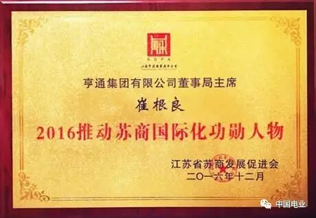 崔根良荣膺"2016年度推动苏商国际化功勋人物"。